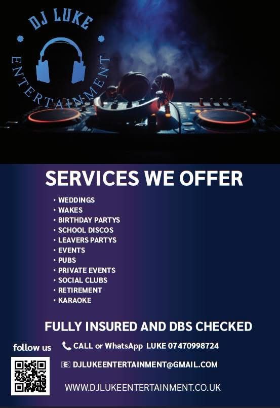 At DJ Luke Entertainment, we pride ourselves on being your go-to source for an array of exceptional services designed to make your event memorable. From magical weddings that celebrate love, to lively birthday parties that capture joy, we cater to all your entertainment needs. Experience unforgettable school discos filled with excitement or host event nights that bring your community together. Our services extend to pubs, private events, and social clubs, where the energy is always high and the fun never stops. We also specialize in retirement parties, wakes, and leavers' parties, ensuring that every event is treated with respect and care, making even the toughest moments memorable. Join us for entertaining karaoke nights, exhilarating bingo nights, and brain-teasing quiz nights that will keep your guests engaged and entertained. Don't miss out on the ultimate party experience with our popular Barmy Bingo! Whether you're planning a grand celebration or an intimate gathering, remember – it's time to book with DJ Luke Entertainment. We’re here to turn your vision into an unforgettable reality.